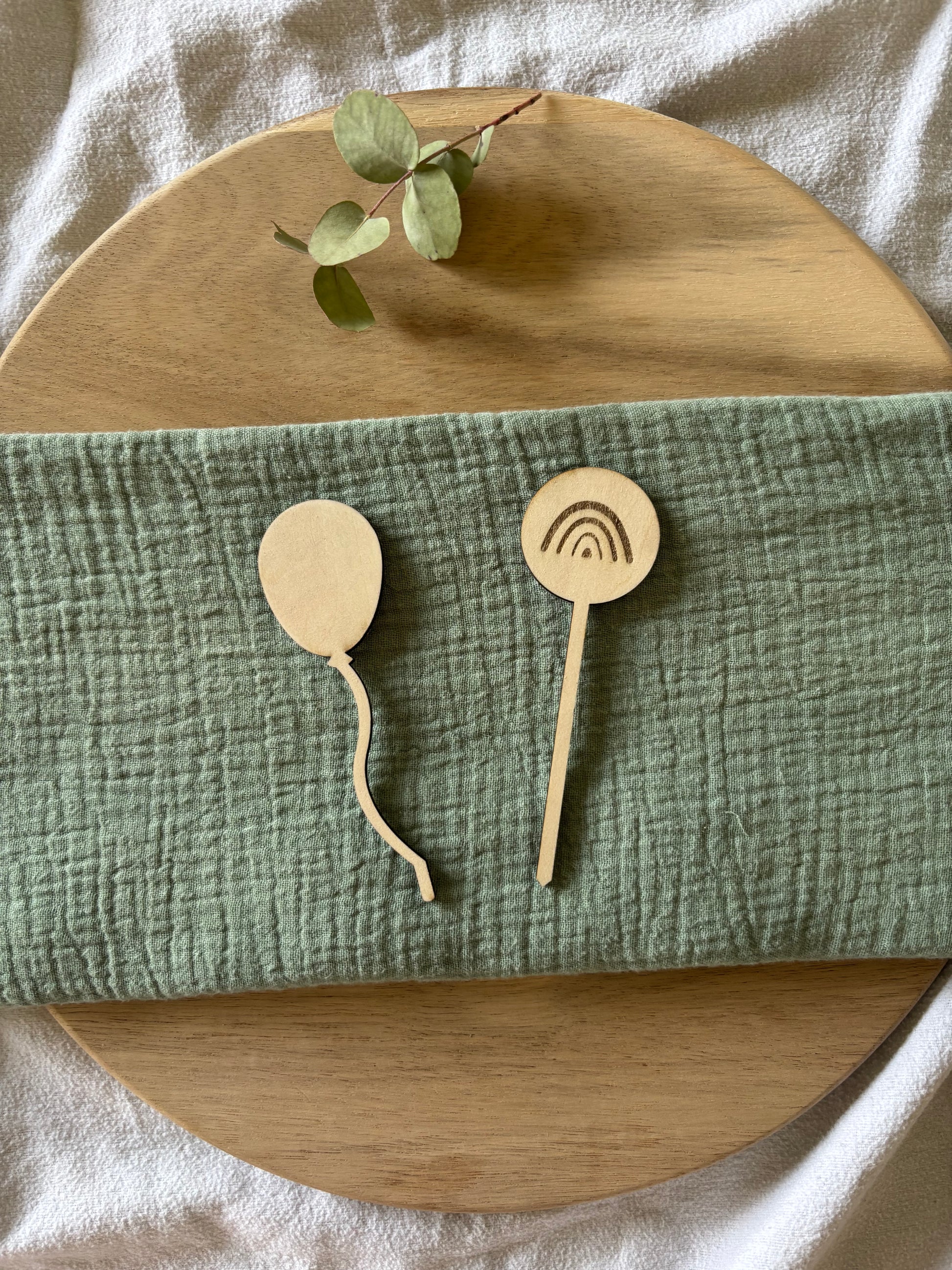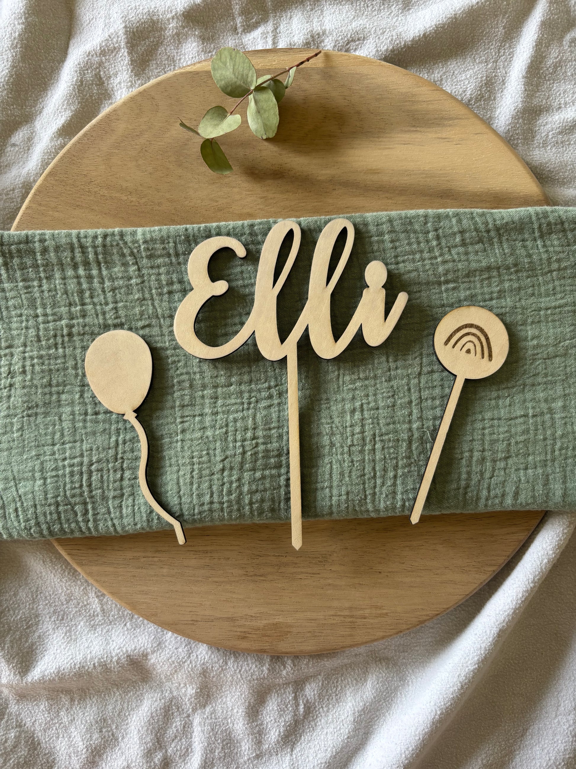 Das gesamte Set wird aus hochwertigem Lindensperrholz gefertigt, das ca. 3 mm stark ist. Dieses natürliche Material verleiht den Caketoppern eine warme und authentische Ausstrahlung und ist ideal für besondere Anlässe wie Geburtstage oder Taufen.