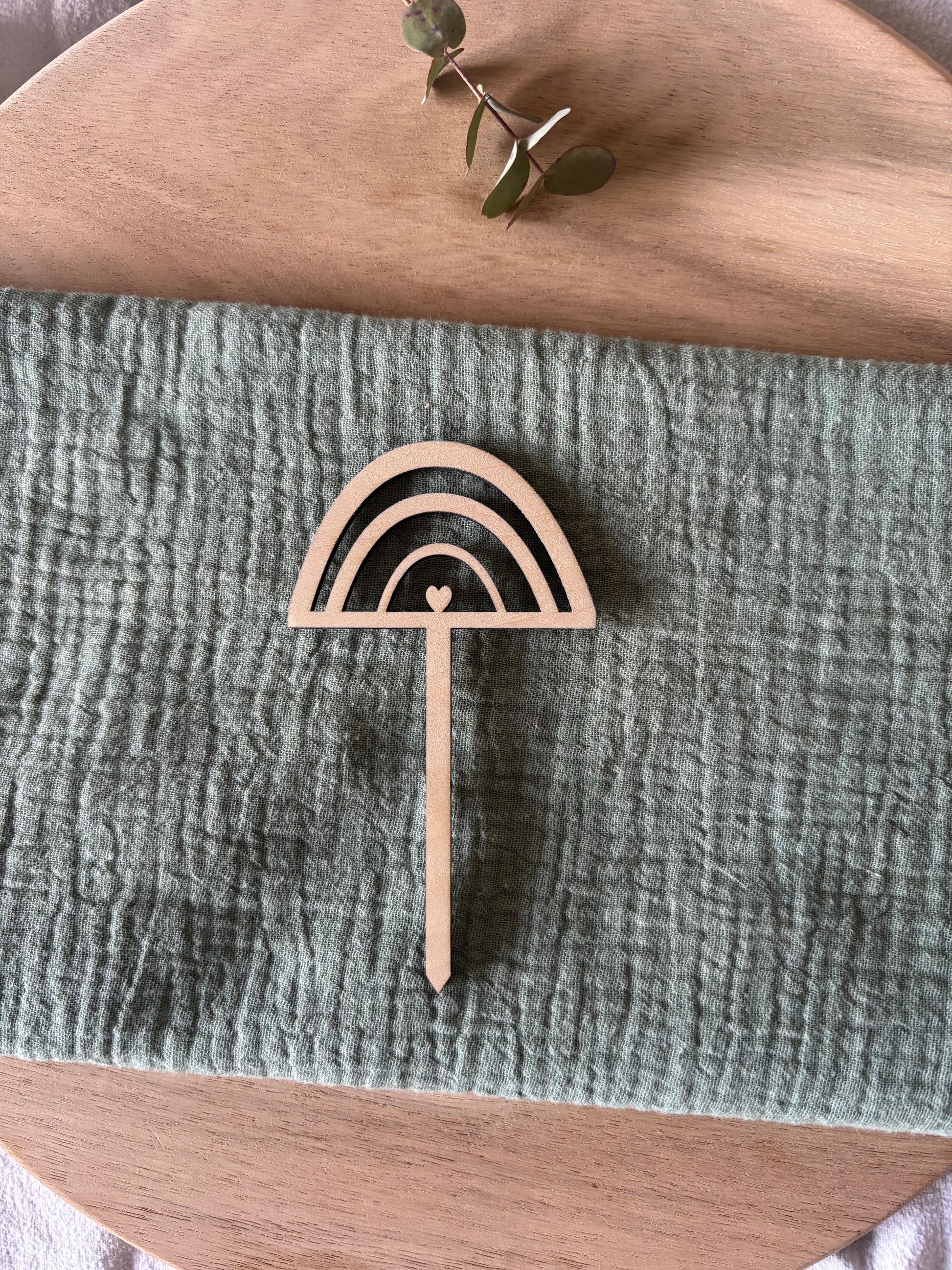 Ein wunderschön geschwungener Regenbogen (ca. 10 cm hoch, 6,5 cm breit) sorgt für eine harmonische Ergänzung.