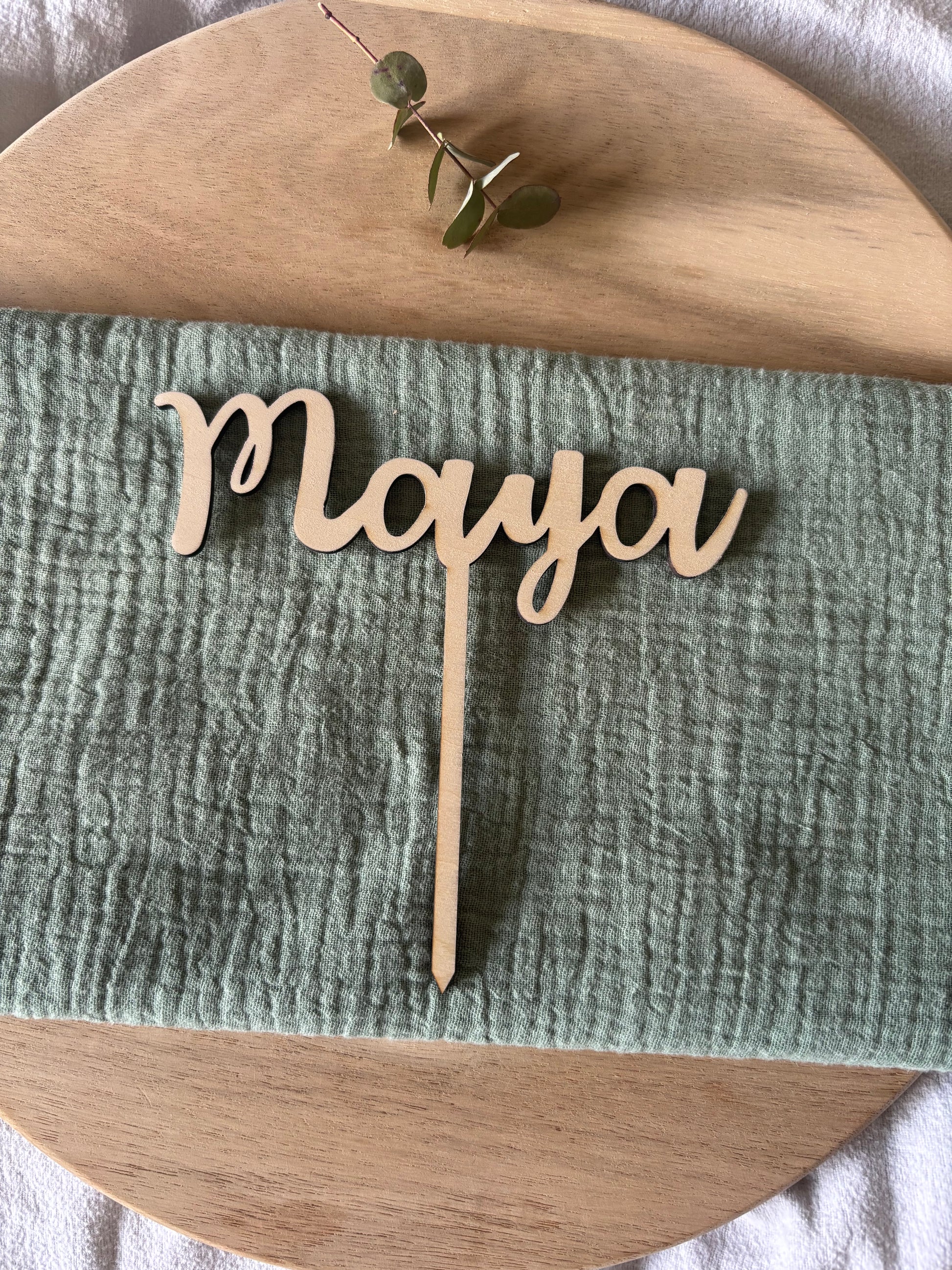 Der Name wird individuell angefertigt und misst je nach Länge zwischen 10-15 cm Breite und 15-17cm Höhe.