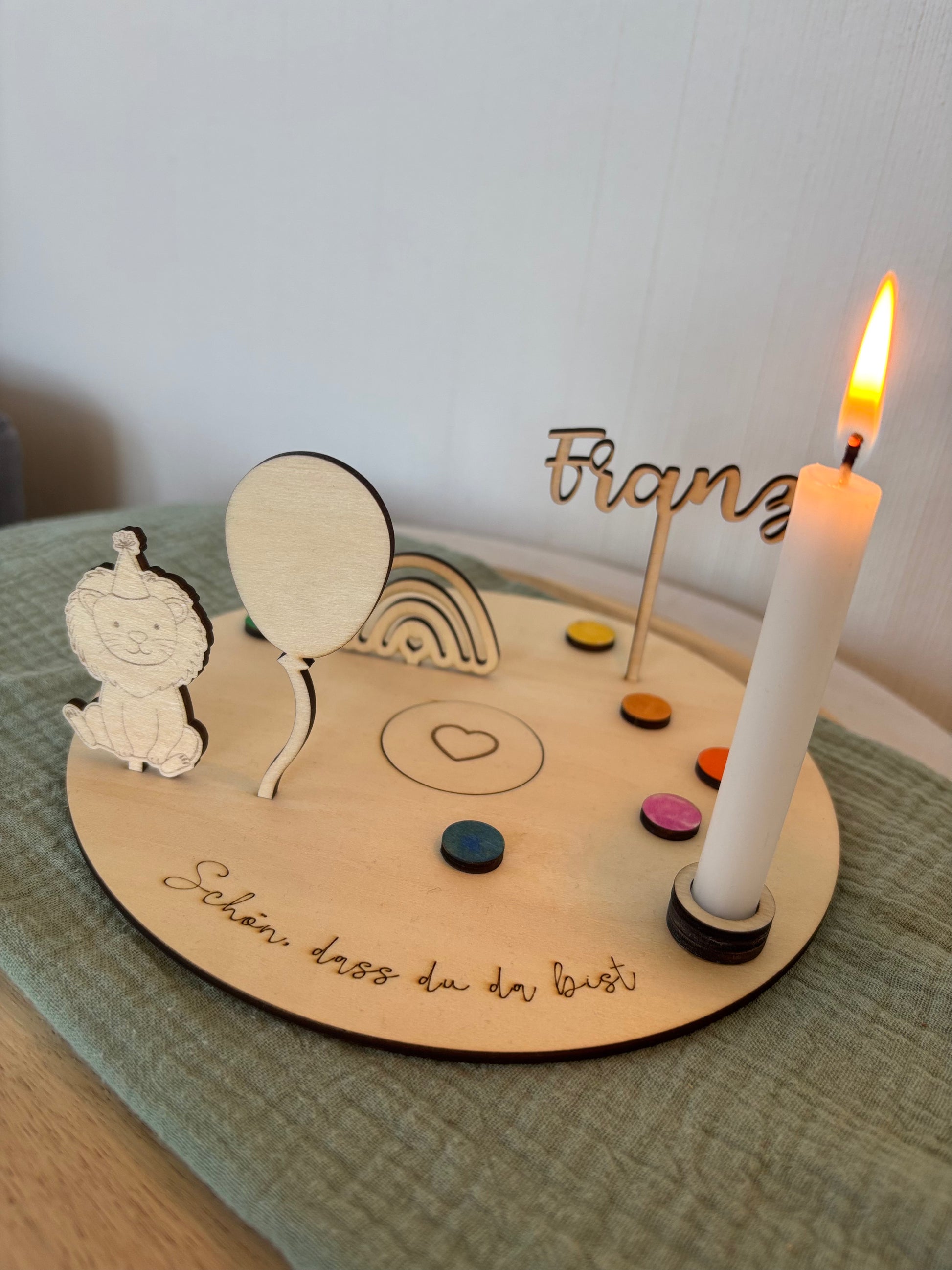 Unser liebevoll gestalteter Geburtstagsteller aus Holz ist das perfekte Highlight für jeden Geburtstagstisch – egal ob für Kinder oder Erwachsene.