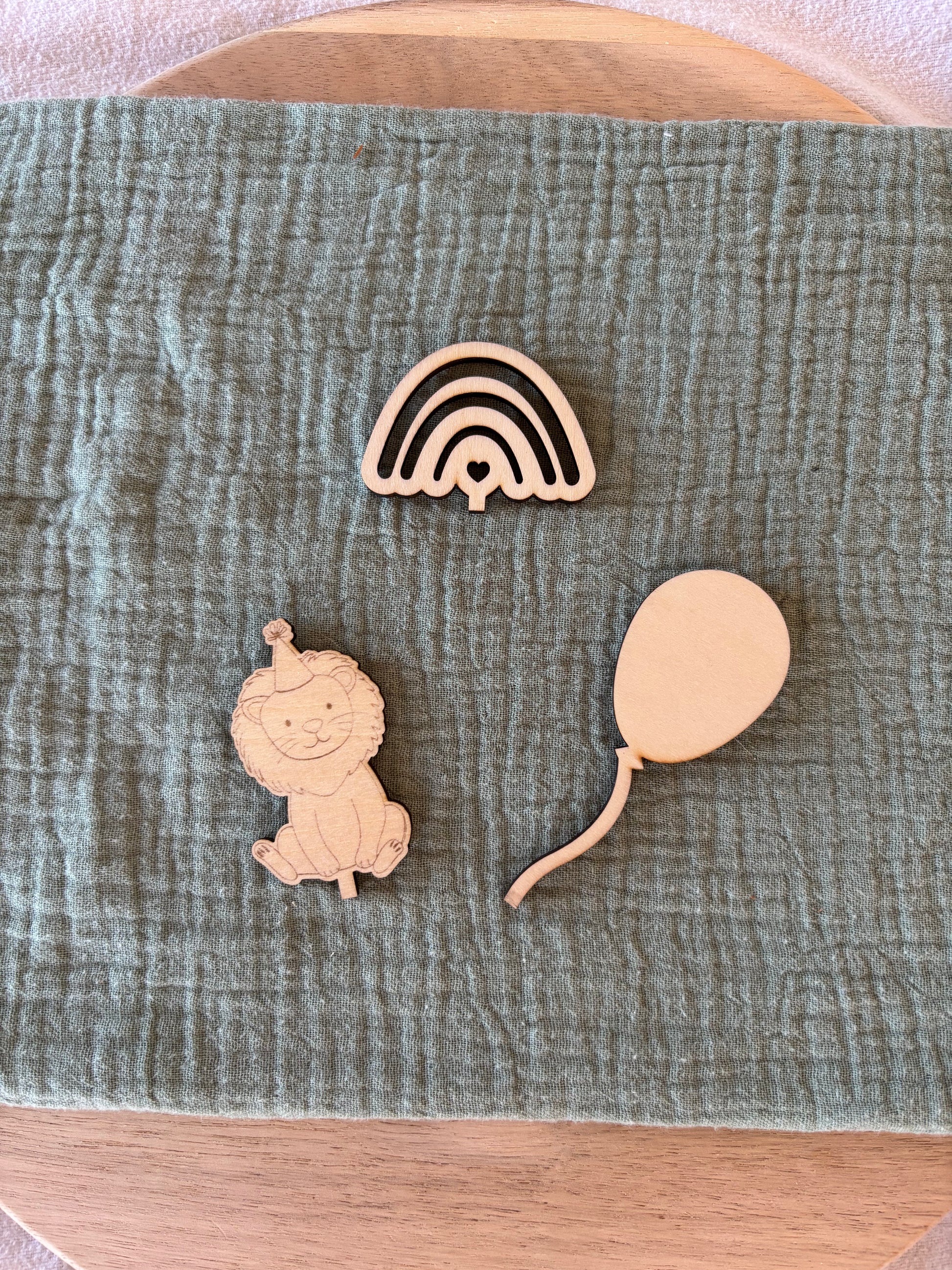 Die Platte verfügt über vier Steckplätze (ca. 3 × 3 mm), in die du die Figuren ganz einfach einsetzen kannst. Natürlich sind auch alle unsere anderen Stecker-Sets passend dazu – so kannst du deinen Geburtstagsteller immer wieder neu gestalten, z. B. mit einem Zahlen-Stecker oder einem Namens-Stecker. Eine perfekte Ergänzung ist unser Holz-Konfetti zum selbst bemalen.