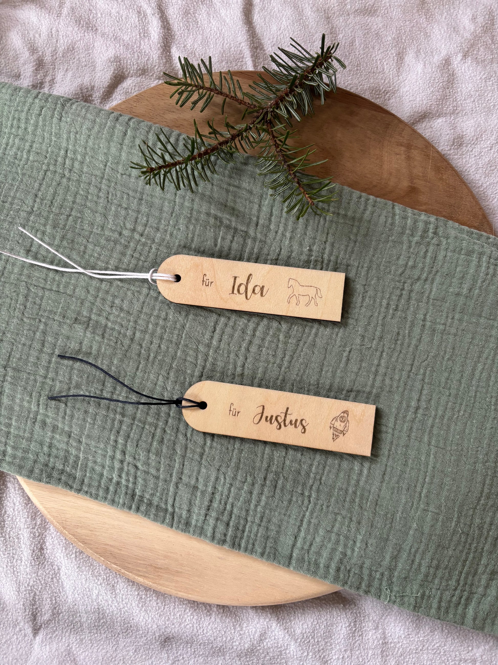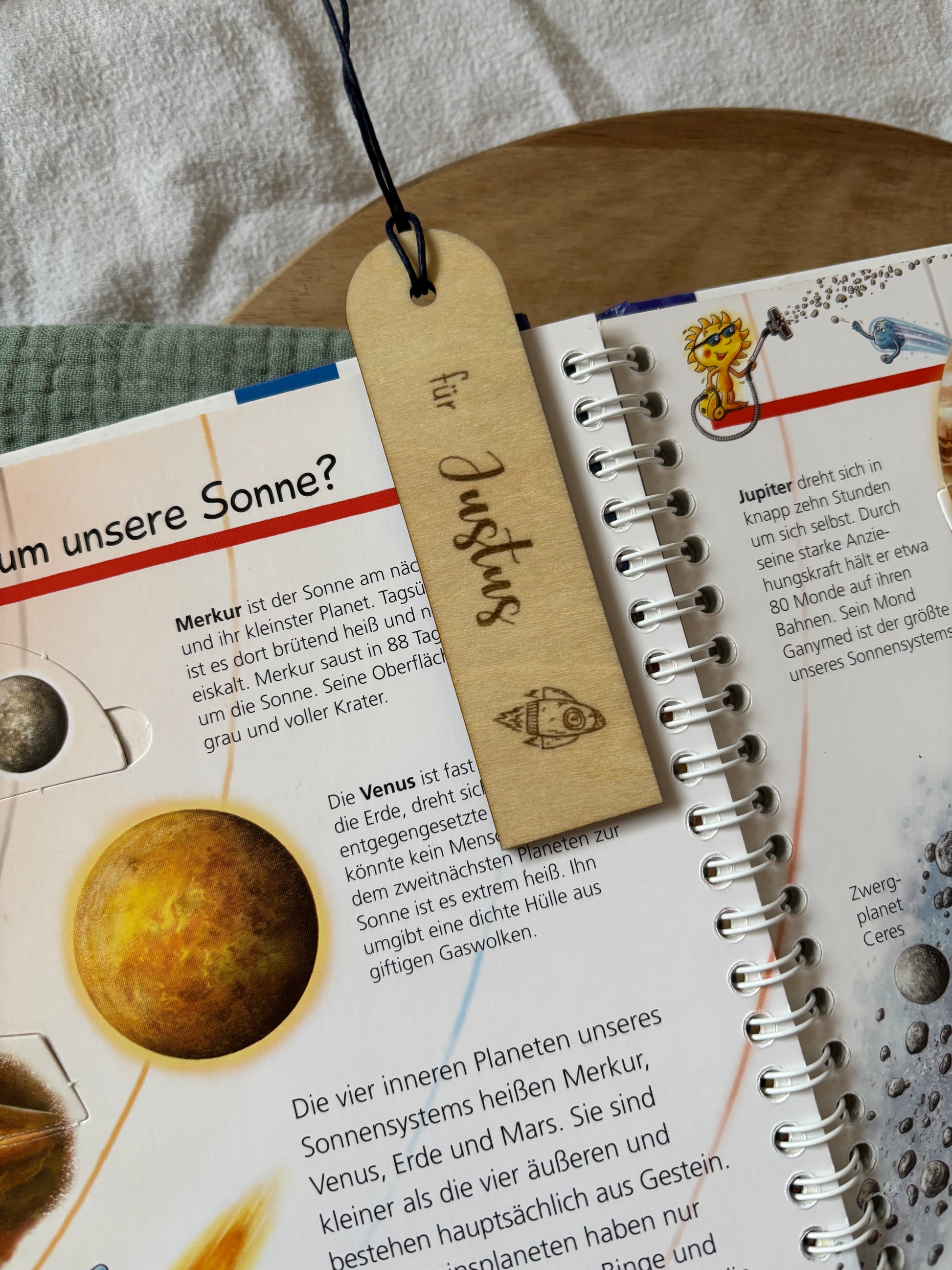 Personalisiertes Lesezeichen aus Holz – mit Wunschname