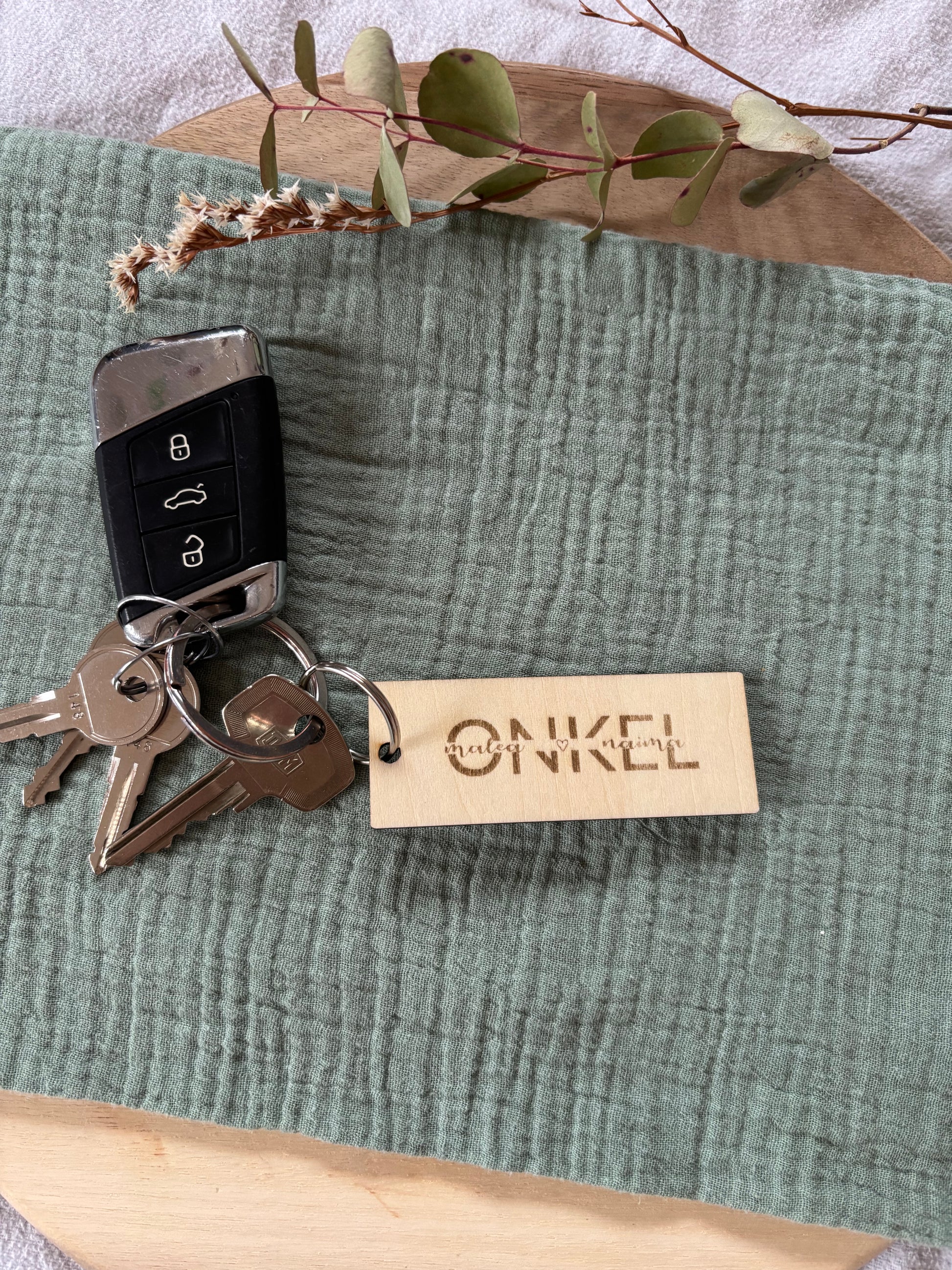 Personalisierter Schlüsselanhänger aus Holz – Onkel, Tante, Oma, Opa & Herzensmenschen