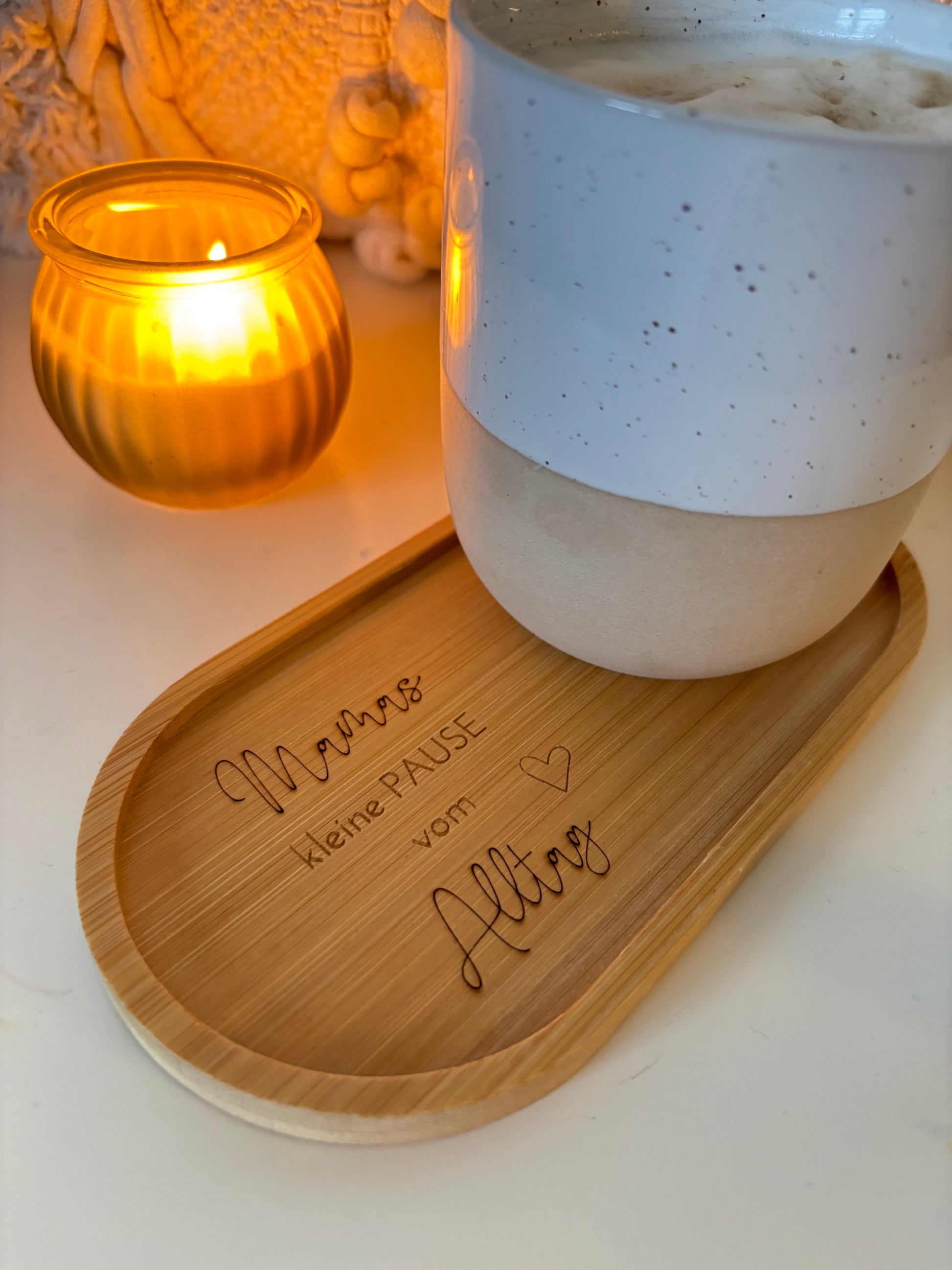 Mach dir oder einem Lieblingsmenschen eine Freude mit diesem liebevoll gestalteten Untersetzer aus Bambusholz! Perfekt für Kaffeetassen, Teetassen oder kleine Deko-Vasen, bringt er eine stilvolle und warme Note auf den Tisch.